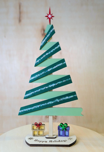 This small ribbon Christmas Tree decor is versatile for your holiday decorating. This looks great on the mantel, shelf, coffee table or spruce up your office or desk.
