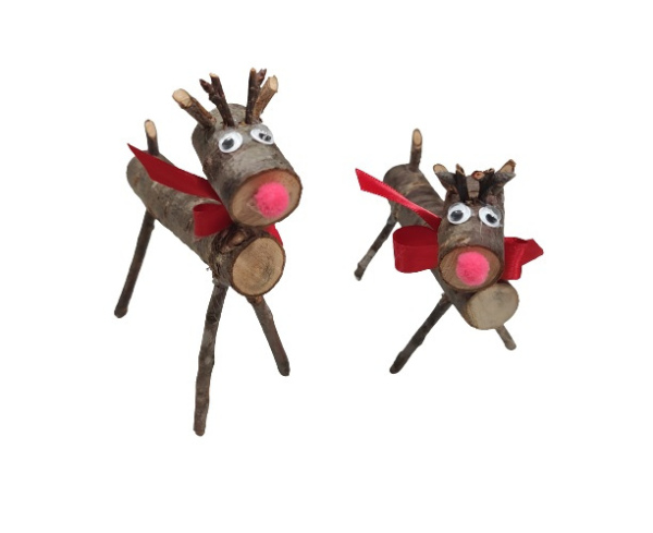 This pair of handmade reindeer are sure to be a hit this Holiday season. As cute as they are, they are fragile. So not a toy for children or pets, as they can break easily if handled roughly. Just being realistic! They would look great on a mantel or shelf (out of reach).