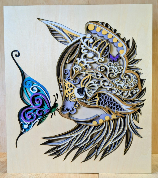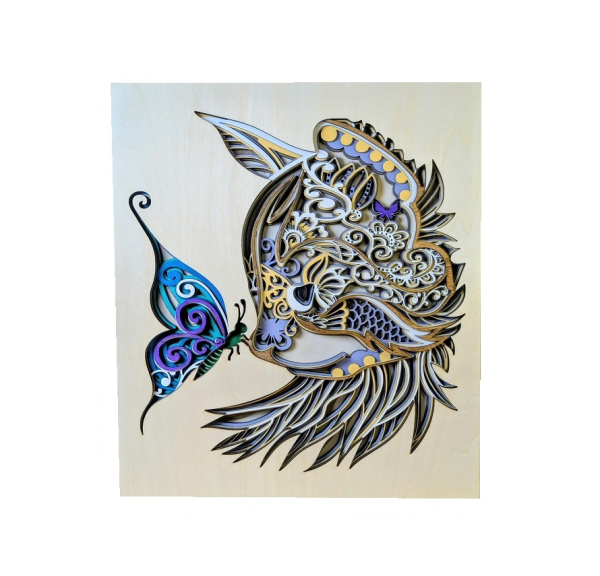 7 layer Cat & Butterfly wall hanging. Home Decor, Laser cut multi-layer products