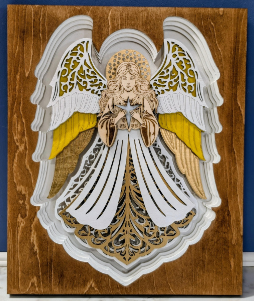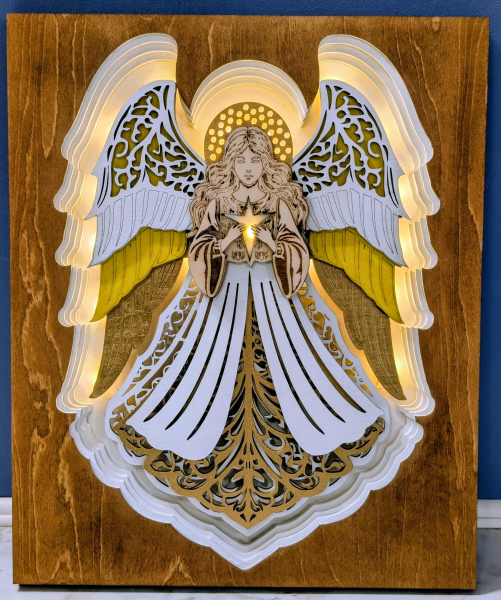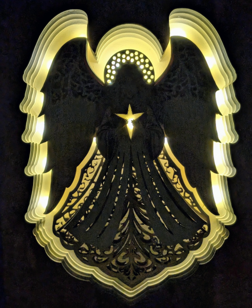 Angel, Laser cut pattern, lighted backlit wall hanging