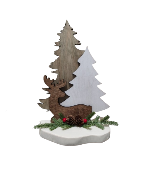 This winter Christmas scene will definitely be a highlight of your Holiday decorations. Constructed of birch wood and knotty pine.